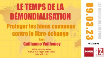 Ce 9 mars 2023, nous accueillons Guillaume Vuillemey sur son ouvrage Le Temps de la démondialisation Protéger les biens communs contre le libre-échange “Nous assistons à la fin de la … Suite